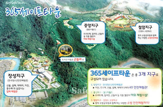 365¼¼ÀÌÇÁŸ¿îÀº ÃÑ 3°³ Áö±¸·Î ¾ÈÀüüÇè½Ã¼³ÀÌ Àִ À强Áö±¸¿Í »ê Á¤»ó¿¡ 縰Áö ½Ã¼³ÀÌ Àִ Áß¾ÓÁö±¸, °­¿øµµ ¼Ò¹æÇб³°¡ ¿î¿µÁßÀΠö¾ÏÁö±¸·Î